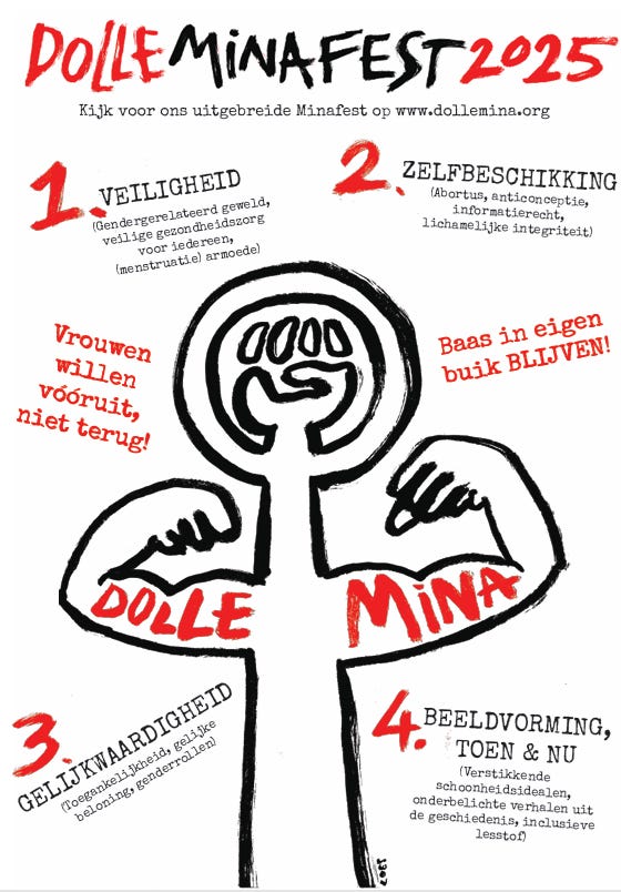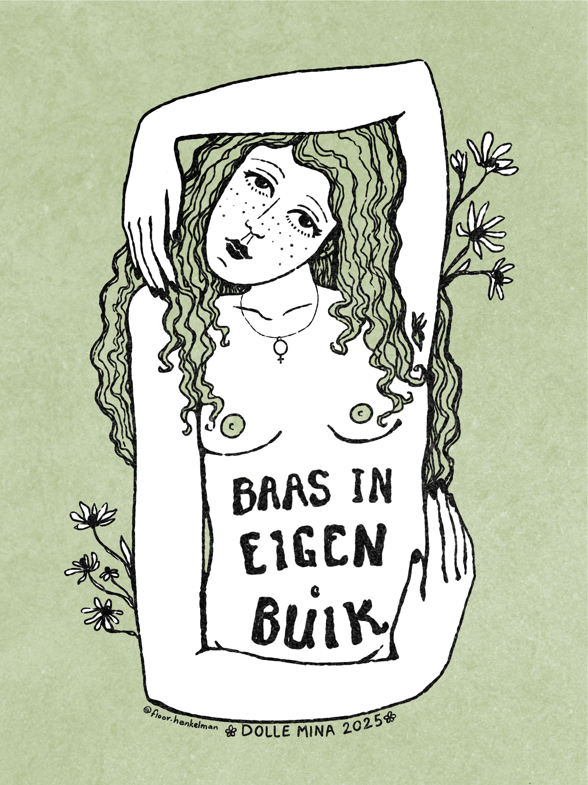 We gaan een Baas in eigen Buik/pro-choice actie doen in de omgeving van Gouda. Verdere info is strikt geheim, we moeten onder de radar opereren. Wil je meer info en in actie komen? Neem dan contact op met Sia Hermanides van de kerngroep of stuur een mail naar dollemina2025@gmail.com