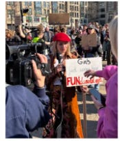 Sia Hermanides (38) is filmmaker en blies samen met Dunya en Claudette de Dolle Mina’s afgelopen januari nieuw leven in. Sia initieert Dolle acties en beheert de Dolle Mina Instagram.
