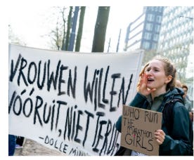 De Nimma’s; de Dolle Mina’s in Nijmegen, laten op de wandelvierdaagse weten dat we terug zijn en vooruit willen, niet achteruit. Voor meer info: dollenimma@proton.me