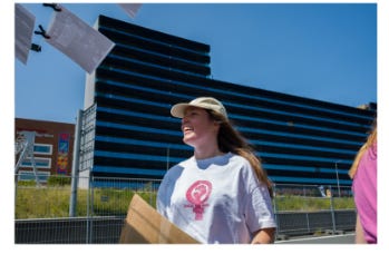 Annie (35) zij/haar, werkt in tech. Zit in de kerngroep en in groepen als Website, Socials, Merch, Schrijvers. Demonstreert mee en heeft ideeën.